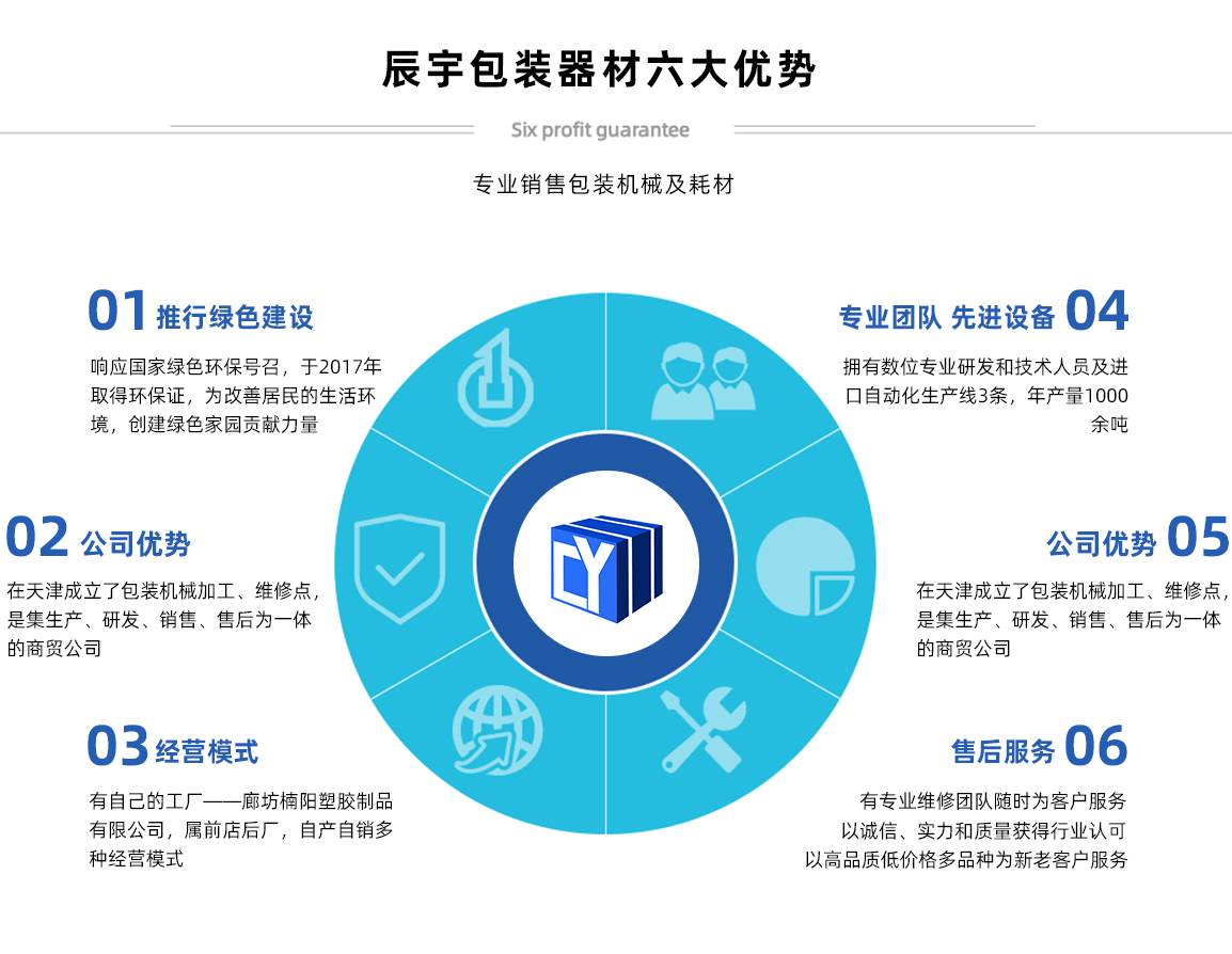 天津辰宇包裝器材有限公司原天津市辰宇商貿(mào)有限公司,位于天津市南開(kāi)區(qū)密云一支路新南馬路五金城二區(qū)33棟106號(hào),本公司主要經(jīng)營(yíng):打包帶,打包機(jī)系列,封箱機(jī)系列,纏繞機(jī)系列,拉伸膜,膠帶,尼龍繩,其他包裝耗材等產(chǎn)品 公司產(chǎn)品質(zhì)優(yōu)價(jià)廉,暢銷全國(guó)各大城市。同等質(zhì)量比價(jià)格,同等價(jià)格比質(zhì)量,我們確保質(zhì)量,價(jià)錢(qián)合理,交貨迅速及時(shí)。公司始終秉承“精益求精,鑄造品質(zhì)的典范”的經(jīng)營(yíng)理念,真誠(chéng)為廣大客戶提供真誠(chéng)的服務(wù)! 天津市辰宇包裝器材有限公司,感謝廣大新老客戶的鼎力支持,竭誠(chéng)歡迎社會(huì)各界朋友前來(lái)洽談業(yè)務(wù),愿真誠(chéng)合作攜手共創(chuàng)美好未來(lái)!
